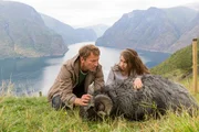Jakob (Wotan Wilke Möhring) und Mai (Sofia Bolotina) machen sich große Sorgen um den Schafbock, der sich plötzlich nicht mehr bewegen mag.Bild: © ORF/Paramount Pictures/dieFilm GmbH/Majestic Filmproduktion GmbH/Georges Pauly