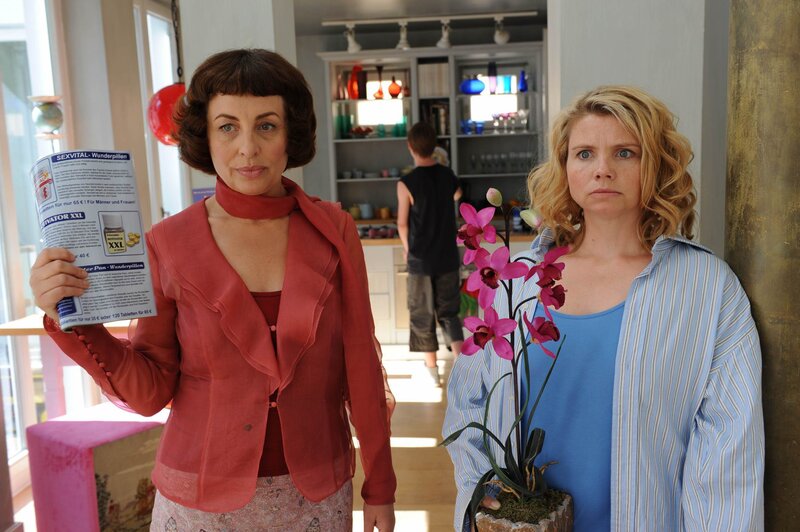 Eines Tages steht Evas (Annette Frier, r.) Mutter Maggie (Teresa Harder, l.) unvermutet vor der Haustür, nicht nur, um bei ihr einzuziehen, sondern auch um ihre Tochter zu bitten, ihren in einem Chatroom kennengelernten Verehrer in ihrem Namen aufzusuchen ...Bild: © SAT.1 / Kerstin Stelter