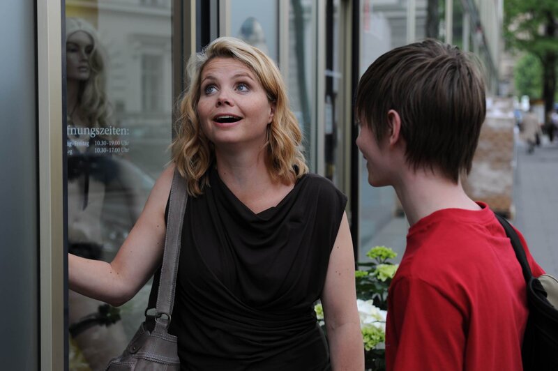 Seit dem Tode ihres Mannes erzieht Eva (Annette Frier, l.) ihren Sohn (Maximilian Waldmann, r.) alleine. Mit seinen 15 Jahren steckt Ben mitten in der Pubertät und ist auf der Suche nach seiner ersten großen Liebe ...Bild: © SAT.1