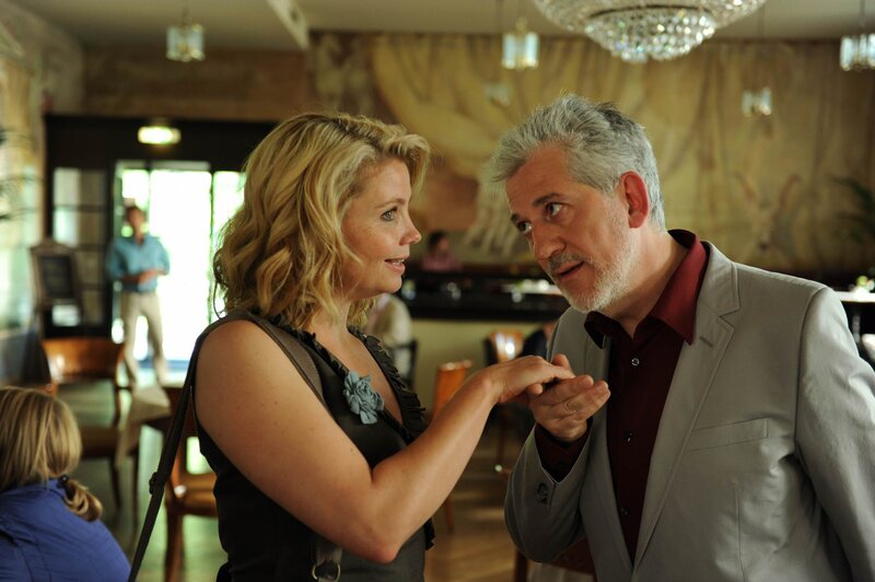 Als sich Maggie (Teresa Harder, l.) und Paul senior (Ilja Richter, r.) eher zufällig kennen lernen, verstehen sie sich auf Anhieb. Nicht ahnend, dass sie seit Wochen eine intensive Chatbeziehung führen ...Bild: © SAT.1 / Kerstin Stelter