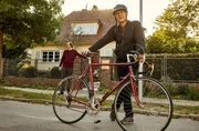 Fürs Klima: Martin (Götz Schubert) hat das Fahrrad aus dem Keller geholt.Bild: © rbb