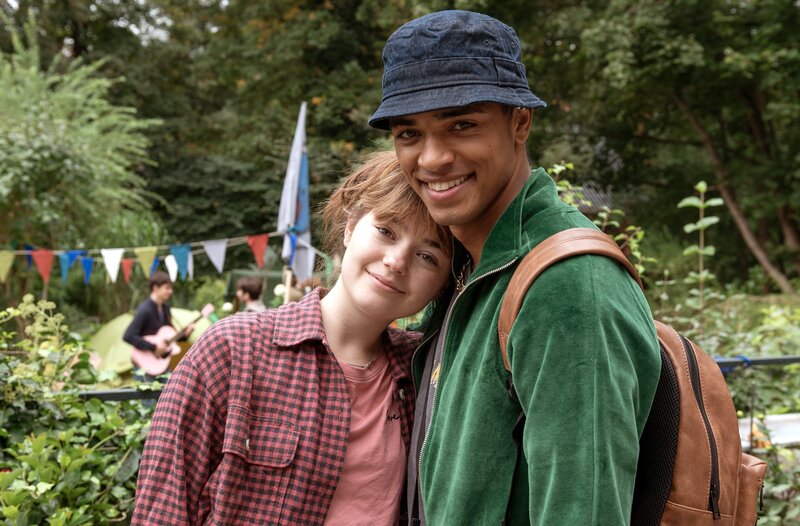 Lilly (Ella Lee, li.) und ihr Freund Ricky (Jeremias Amoore) wollen das Klima retten.Bild: © ARD Degeto/André Kowalski