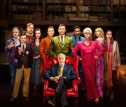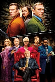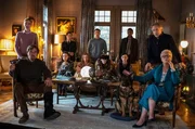 Nach dem Tod von Harlan Thrombey (unten v. li. n. re.): Die Familienmitglieder Walt Thrombey (Michael Shannon), Meg Thrombey (Katherine Langford), Joni Thrombey (Toni Collette), Nana Thrombey (K Callan), Jacob Thrombey (Jaeden Martell), Donna Thrombey (Riki Lindhome, li. oben), Ransom Drysdale (Chris Evans, hinten Mitte), Richard Drysdale (Don Johnson, re. oben) und Linda Drysdale (Jamie Lee Curtis, re. unten) werden von den Polizisten Elliot (Lakeith Stanfield, hinten re.) und Wagner (Noah Segan, hinten li.) befragt.