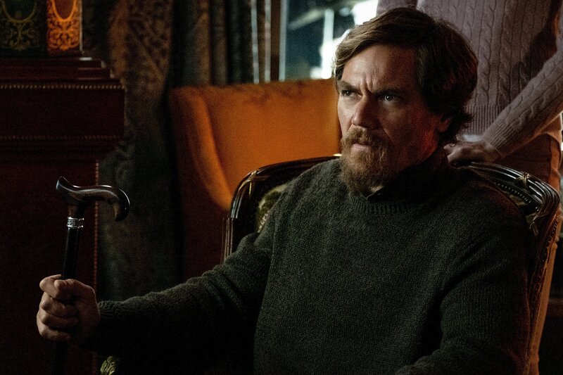 (v.l.n.r.): Walt Thrombey (Michael Shannon), Donna Thrombey (Riki Lindhome), Trooper Wagner (Noah Segan), Meg Thrombey (Katherine Langford), Joni Thrombey (Toni Collette), Ransom Drysdale (Chris Evans), Großmutter Wanetta (K Callan), Jacob Thrombey (Jaeden Martell), Lt. Elliott (Lakeith Stanfield), Richard Drysdale (Don Johnson), Linda Drysdale (Jamie Lee Curtis).