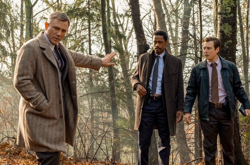 Sie müssen einen geheimnisvollen Fall lösen: Die Polizisten Elliot (Lakeith Stanfield, Mitte) und Wagner (Noah Segan, li.) und der Privatdetektiv Blanc (Daniel Craig, re.).