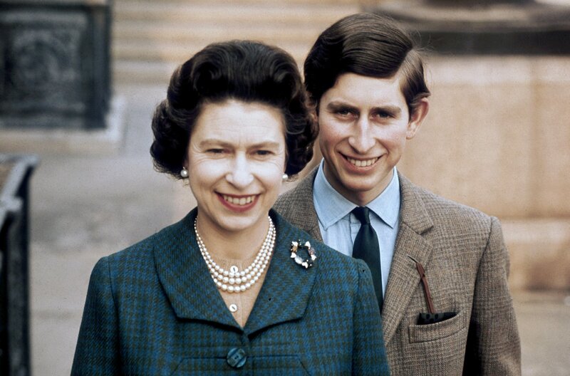 Königin Elizabeth II. mit ihrem damals 20-jährigen Sohn Charles auf Schloss Windsor im Jahr 1969Bild: © Getty Images