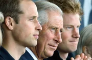 Charles (Mi.) und seine Söhne Prinz William (li.) und Prinz Harry (re.) bei den Invictus Games in London im Jahr 2014Bild: © Max Mumby/Indigo