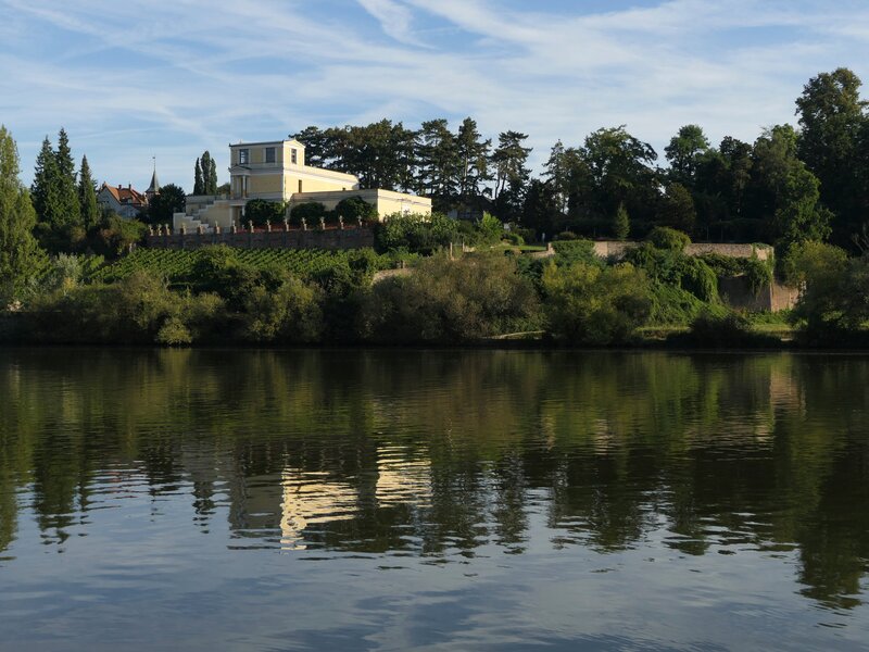 Pompejanum thronend über dem Main, errichtet nach dem Vorbild der "Casa dei Dioscuri" in Pompeji von Friedrich von Gärtner – nicht als Privatvilla für den König, sondern für den Kunstliebhaber zum Genuss und Studium, Aschaffenburg 1840/48.Bild: © BR/Dr. Bernhard Graf