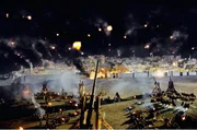 Balian (Orlando Bloom, l.) flüchtet aus seinem Heimatdorf und schließt sich seinem Vater Godfrey (Liam Neeson) an, mit dem er in das Heilige Land reisen will.