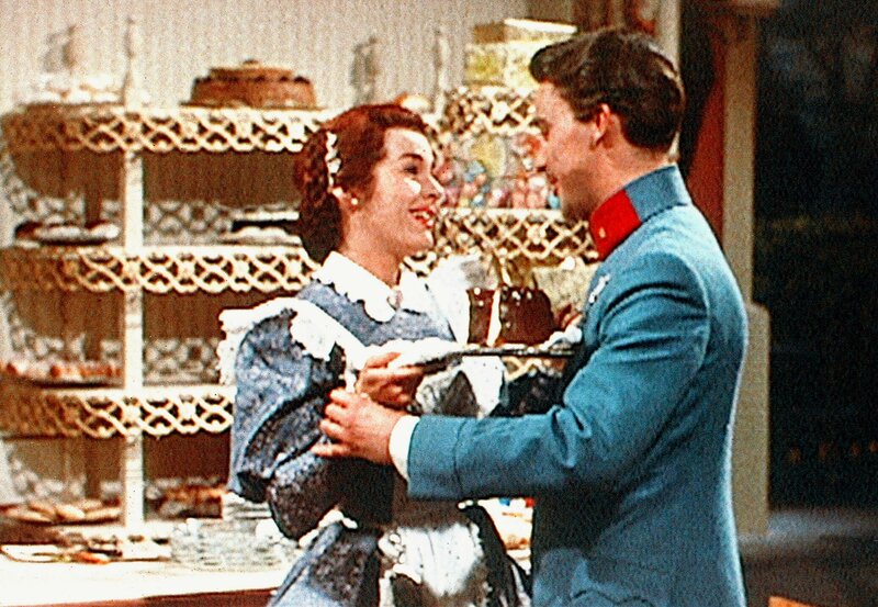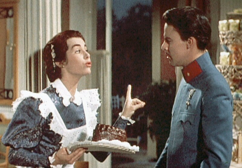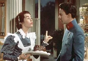 Die Konditortochter Theres Tomasoni (Marianne Koch) erklärt dem Wiener Offizier Ferdinand von Tettenbach (Michael Cramer), dass Walzertanzen seit kurzem in München verboten ist.Bild: © MDR/ARD/Degeto
