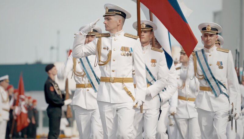 Russland will aktuell bis zu 40 Prozent seines Staatshaushaltes in Militär und Sicherheit stecken. Truppen demonstrieren ihre Stärke bei Militärübungen.Bild: © ZDF und Babel Doc