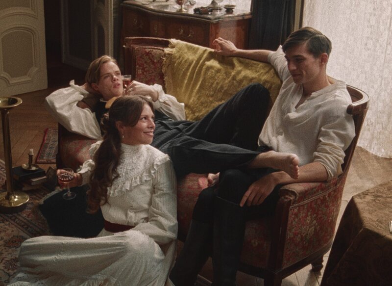 Hermann (Vincent zur Linden, re.) und die Zwillinge Klara (Lilja van der Zwaag) und Emil (Alexander Schuster) diskutieren über die Vor- und Nachteile einer Vermählung.