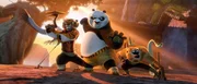 Ihr Kampf gegen das Böse wird für Monkey (l.), Panda Po (M.) und Tigress zu einem turbulenten Abenteuer.