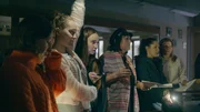 Vera Lebedynska (mi.) ist Schauspielerin am Theater in Mariupol. Sie überlebte den russischen Bombenangriff auf das Theater nur knapp während viele ihrer Kollegen starben.