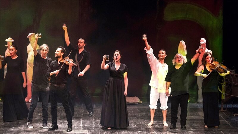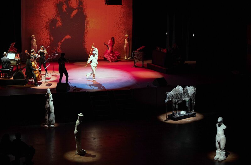 So wie in Bachs Bauernkantate Volks- und Kunstmusik, derb Bäuerliches und vornehm Barockes aufeinanderprallen, spielt auch die Performance von La Fura dels Baus mit kontrastierenden Stilebenen.