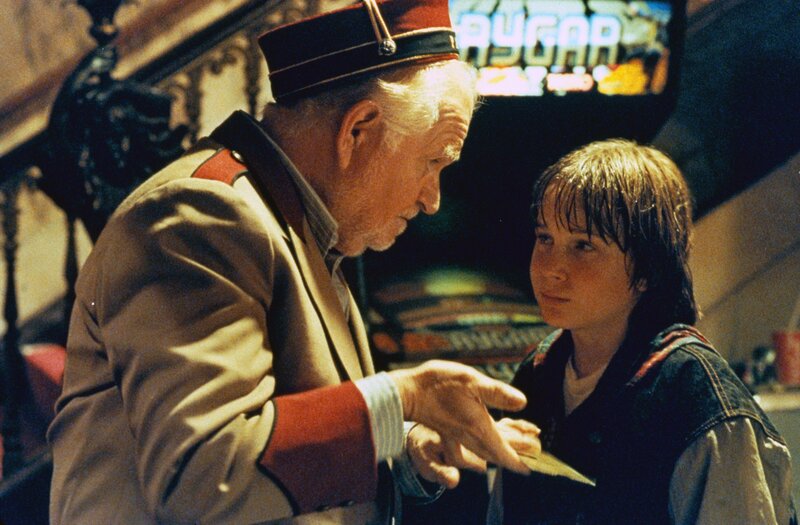Der Vorführer (Robert Prosky, l.) von Dannys Stammkino schenkt dem Jungen eine magische Kinokarte, mit der Danny (Austin O'Brian) in die Welt des Films eintreten kann.