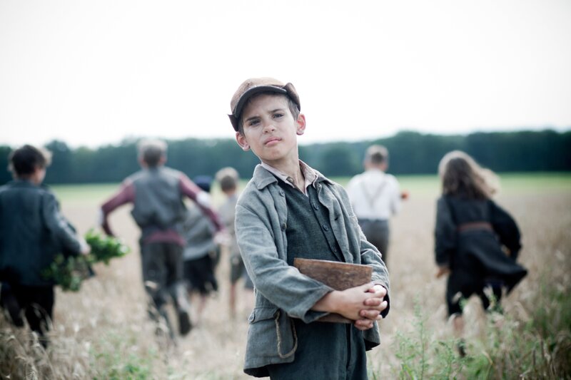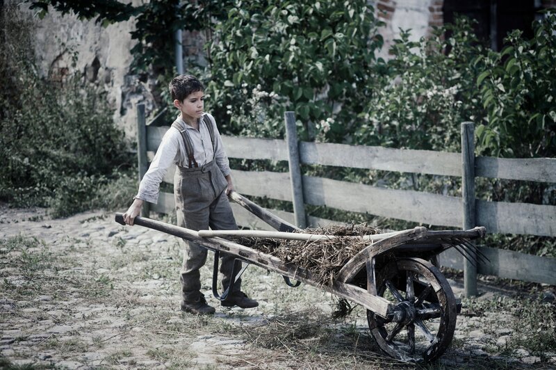 Jurek (Andrzej Tkacz) und die anderen jüdischen Kinder sind auf Beutezug durch die umliegenden Bauernhöfe. Jurek klaut ein paar Kirschen. Als ein Junge gefasst wird, schaut Jurek zurück und überlegt, ob er ihm helfen kann.Bild: © ZDF und BR, Hagen Keller