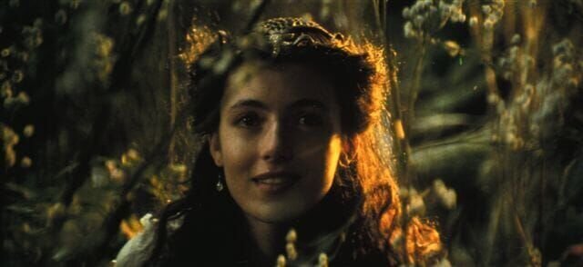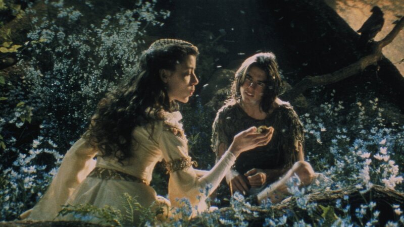 Die schoene Prinzessin Lili (Mia Sara) trifft sich in ihrem Maerchenparadies mit ihrem geliebten Jack (Tom Cruise). Er soll ihr beibringen, wie eine Amsel zu singen.Bild: © ZDF