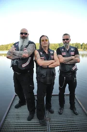 Werner (Micha Gaedt, Mitte) und seine Kumpels von den Devil Angels sind hinter einem der Hausbootfahrer her. Rocker1 (Dirk Uelpenich, li.), Rocker2 (Kaya Kanbay, re.).