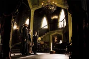 Als es Graf Olaf (Jim Carrey, l.) endlich gelingt, die drei Kinder (Liam Aiken, M.) erneut in seine Gewalt zu bringen, will er Violet (Emily Browning, r.) heiraten - oder die kleine Sunny wird sterben ...Bild: © MKNS