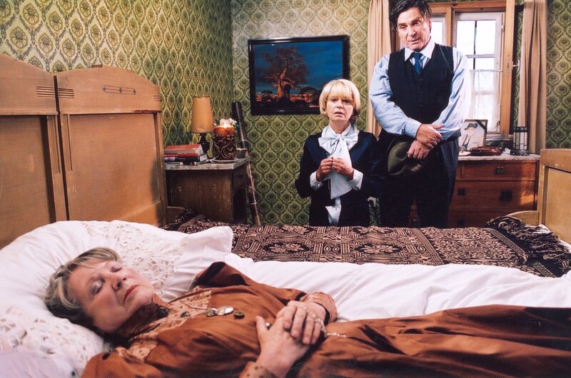 Gisela Sobotta (Gisela Schneeberger) und ihr Mann Konrad (Elmar Wepper) hoffen, aus dem Tod ihrer Verwandten mächtig Profit schlagen zu können.Bild: © BR/Bavaria Film/Barbara Bauriedl