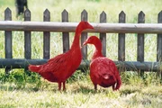 Die beiden roten Gänse im Garten des Bauernhofes der verstorbenen Oma Dargatz.Bild: © BR/Bavaria Film/Bauriedl / Barbara Bauriedl