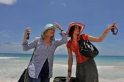 Zu ihrem Geburtstag schenkt sich die bescheidene Barbara Lichtblau (Annette Frier, l.) eine Mexiko-Reise. Weil ihr Mann nicht mitkommen will, springt kurzerhand ihre Freundin Sandra (Fabienne Elaine Hollwege, r.) ein. Alles ist so, wie sie es sich immer erträumt hat: blauer Himmel, weißer Strand - allerdings hat Sandra vom ersten Tag an nur noch Augen für den feurigen Diego ...Bild: © SAT.1 / Hardy Brackmann Eigenproduktionsbild frei