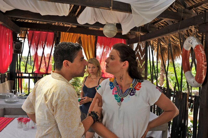 Weil der attraktive Strandbarbesitzer Pepe (Roberto Guerra, l.) Consuela (Elena Uhlig, r.) mit der Urlauberin Barbara (Annette Frier, M.) betrogen hat, kracht es immer wieder gewaltig zwischen dem Ehepaar. Ist ihre Ehe noch zu retten?; Weil der attraktive Strandbarbesitzer Pepe (Roberto Guerra, l.) Consuela (Elena Uhlig, r.) mit der Urlauberin Barbara (Annette Frier, M.) betrogen hat, kracht es immer wieder gewaltig zwischen dem Ehepaar. Ist ihre Ehe noch zu retten?Bild: © SAT.1 / Hardy Brackmann