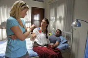 Als sich Pepe (Roberto Guerra, r.) während eines Bootsausflugs mit Barbara (Annette Frier, l.) verletzt, wird er ins Krankenhaus gebracht. Dort bricht sein dreistes Lügengebäude in sich zusammen. Doch dann hat seine Frau Consuela (Elena Uhlig, M.) eine Idee ...Bild: © SAT.1 / Hardy Brackmann Eigenproduktionsbild frei