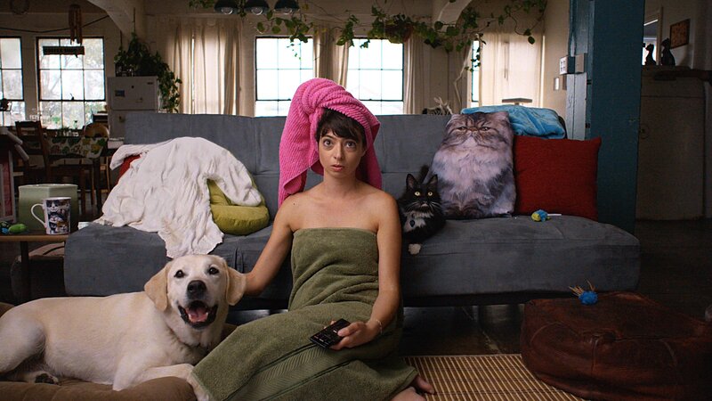 "Liebe auf 4 Pfoten": Die vom Liebespech verfolgte Emma (Kate Micucci, l.) sieht sich unverhofft mit gleich drei neuen Verehrern konfrontiert: Carl (Sean Astin, r.), sowie ihren Haustieren Summit und Ajax, die sich auf magische Weise in Menschen verwandeln.