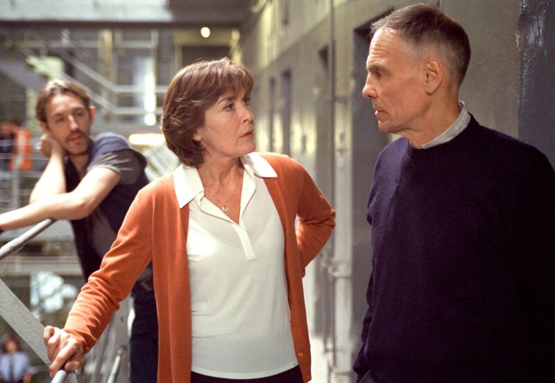 SWR Fernsehen LIEBE AUF BEWÄHRUNG, am Mittwoch (25.03.15) um 22:00 Uhr. Der Gefängnispsychologe (Hans Peter Hallwachs, li.) und der Direktor (Michael Greiling) warnen Juliane Willbrandt (Thekla Carola Wied) vor einer zu engen Bindung mit einem Häftling.