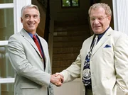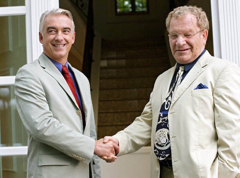 Immer schön lächeln: Bauamtsleiter Otto Schlegel (Christoph M. Ohrt) und der Industrielle Reichenbach (Michael Hanemann, re.) machen gute Miene zum bösen Spiel.; ARD Degeto LIEBE IM HALTEVERBOT, am Samstag (09.11.24) um 14:00 Uhr im ERSTEN. Immer schön lächeln: Bauamtsleiter Otto Schlegel (Christoph M. Ohrt) und der Industrielle Reichenbach (Michael Hanemann, re.) machen gute Miene zum bösen Spiel. © ARD Degeto/Manju Sawhney, honorarfrei - Verwendung gemäß der AGB im engen inhaltlichen, redaktionellen Zusammenhang mit genannter Degeto-Sendung und bei Nennung "Bild: ARD Degeto/Manju Sawhney" (S2). ARD Degeto/Programmplanung und Presse, Tel: 069/1509-335, degeto-presse@degeto.deBild: © ARD Degeto/Manju Sawhney
