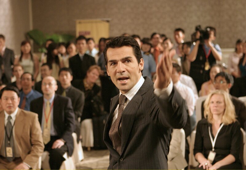 Alexander (Erol Sander, Mitte) deckt während einer Präsentation seiner Konkurrenten einen Wirtschaftsbetrug auf.Bild: © ARD Degeto/Terry Chua