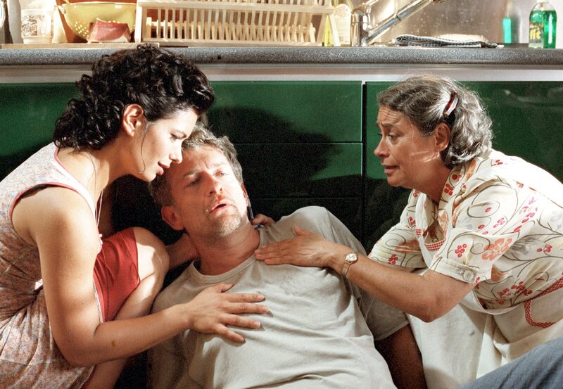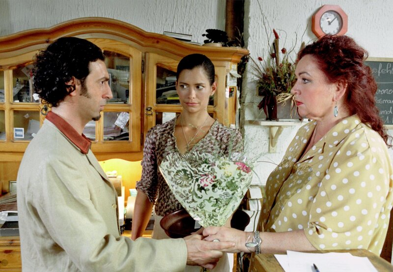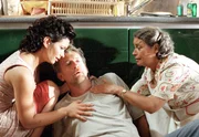 Skeptisch beobachtet Stella (Sandra Speichert, Mitte) den Abschied ihres Verlobten Guiseppe (Claudio Caiolo) von ihrer Mutter Antonia (Roswitha Dost).Bild: © "ARD DEGETO/Katrin Knoke" (S 2)