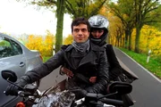 Verenas (Simone Thomalla, r.) Wagen ist auf halber Strecke liegen geblieben. Zum Glück wird sie von dem charmanten Motorradfahrer Leon (Kai Schumann, l.) mitgenommen.