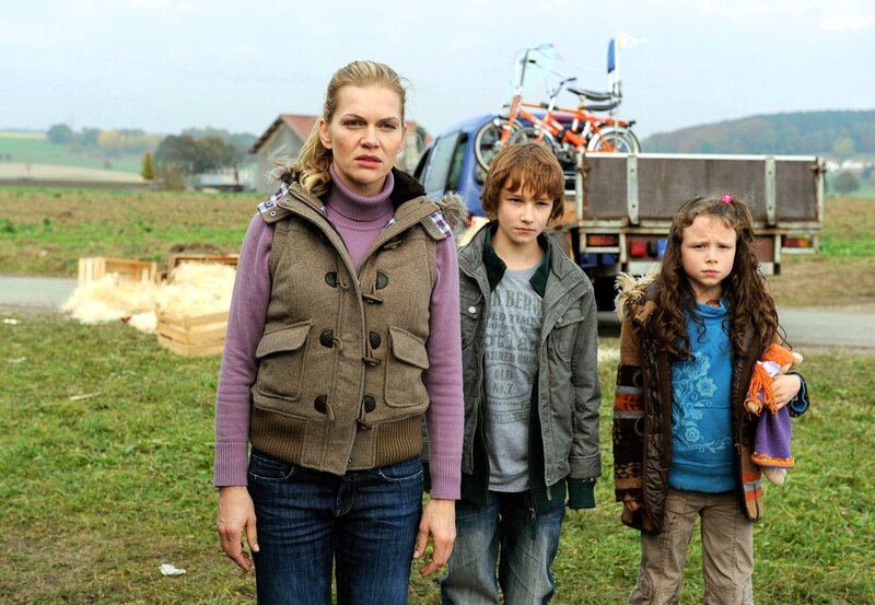 Die Töpferin Teresa (Anna Loos) und ihre beiden Kinder Max (Felix Steitz) und Lisa (Mercedes Jadea Diaz) haben unverletzt einen schweren Unfall überstanden.Bild: © 3sat