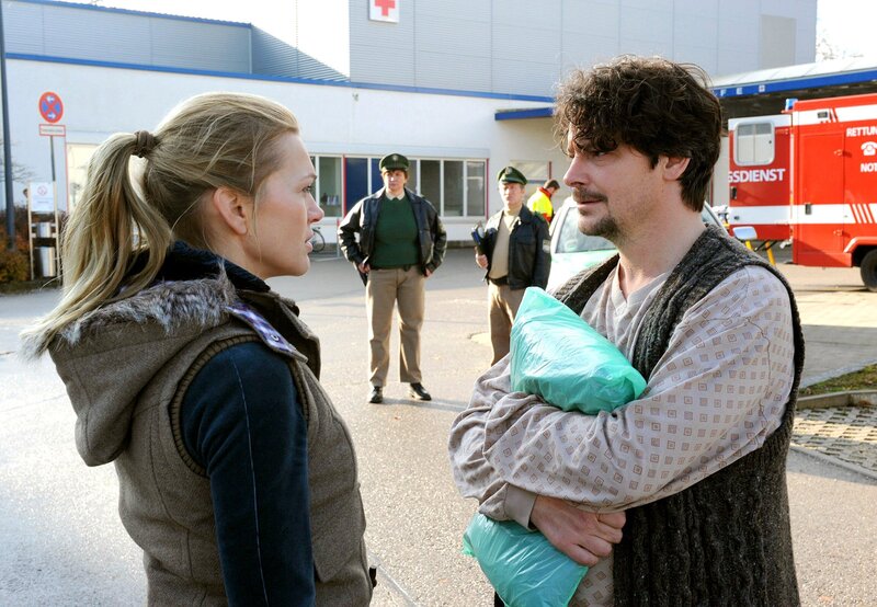 Die beiden Polizisten (Stefan Merki und Annette Paulmann) schlagen Teresa (Anna Loos, li.) vor, den verwirrten Mann (Fritz Karl), der nach einem Unfall sein Gedächtnis verloren hat, bei sich aufzunehmen. Weiteres Bildmaterial finden Sie unter www.br-foto.de.Bild: © rbb