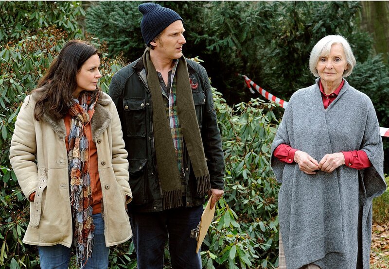 Kommissarin Biehl (Elisabeth Lanz, links) und ihr Assistent Klopstock (Kai Lentrodt) fragen sich, ob Cäcilie von Wangenheim (Katharina Matz, recht) etwas zu verbergen hat.