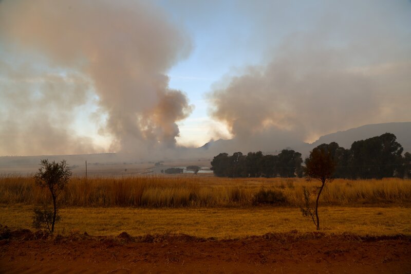 Brennende Savanne am Fuß des Lionsrocks; Buschfeuer sind die größte Gefahr für die Tiere in den Gehegen.Bild: © 3sat