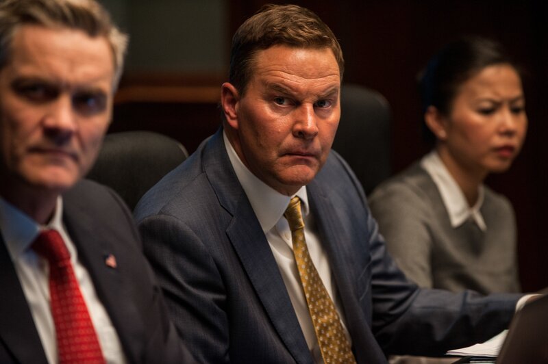 Defence Secretary Ruth Macmillan (Melissa Leo, m.), NSA Ray Monroe (Sean O'Bryan, r.).Bild: © ORF