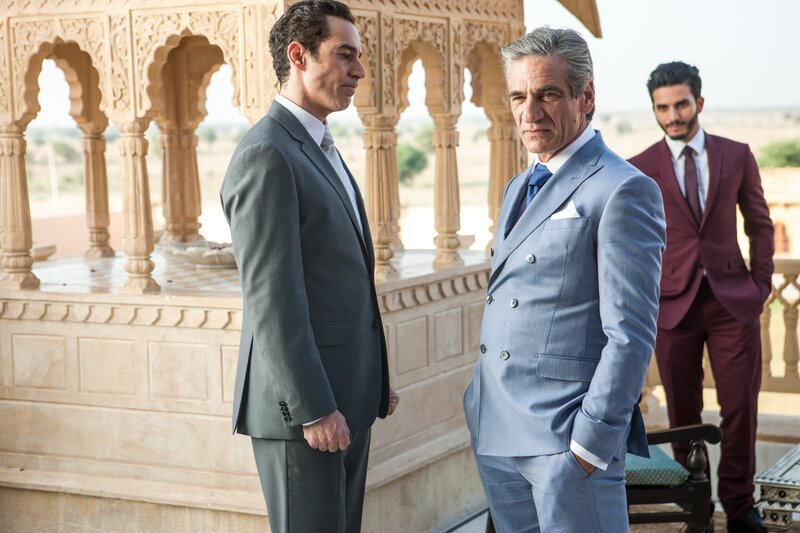 L-R: Kamran Barkawi (Waleed Zuaiter), Aamir Barkawi (Alon Aboutboul), Sultan Mansoor (Mehdi Dehbi).Bild: © David Appleby / ORF / Telepool