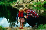 Papa (Claes Malmberg) erklärt Lotta (Grete Havnesköld), wie man angelt.Bild: © Iduna Film