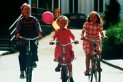 Lotta (Grete Havnesköld, Mi.) fährt mit Mia (Linn Gloppestad, re.) und Jonas (Martin Andersson) Fahrrad.Bild: © Iduna Film