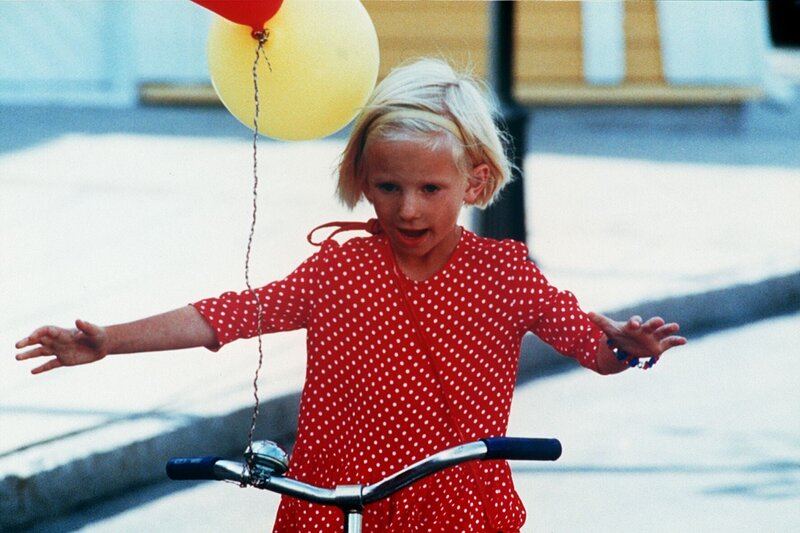 Lotta (Grete Havneskšld, li.) lernt Fahrradfahren. Jonas (Martin Andersson) hilft ihr dabei.Bild: © Iduna Film