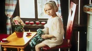 Trotzig sitzt Lotta (Grete Havnesköld) in ihrer neuen "Wohnung", im Dachboden von Tante Berg. Sie soll einen kratzigen Pullover - anstatt ihres Samtkleides anziehen.Bild: © Jan Rydqwist / ZDF und Jan Rydqwist