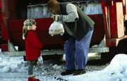 Lotta (Grete Havneskjřld) bekommt ihre Tüte mit Brot und dem Stofftier "Schweinebär" wieder zurück, nachdem sie es aus Versehen in die Mülltonne geworfen hatte.Bild: © Taurus, München