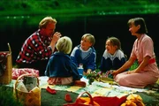 V.li.n.re.: Lotta (Grete Havnesköld), Mia (Linn Gloppestad), Jonas (Martin Andersson), Mia (Linn Gloppestad) Papa (Claes Malmberg) und Mama (Beatrice Järas) suchen nach einem schönen Picknick-Platz-.Bild: © Iduna Film