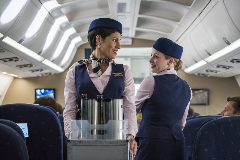 Jede Woche am Dienstag fliegt Flugbegleiterin Charlotte (Jasmin Gerat, r.) nach New York. Eines Tages muss sie einen unter starker Flugangst leidenden Gast, Klaus (Oliver Mommsen, l.), intensiv betreuen - mit weitreichenden Folgen ...