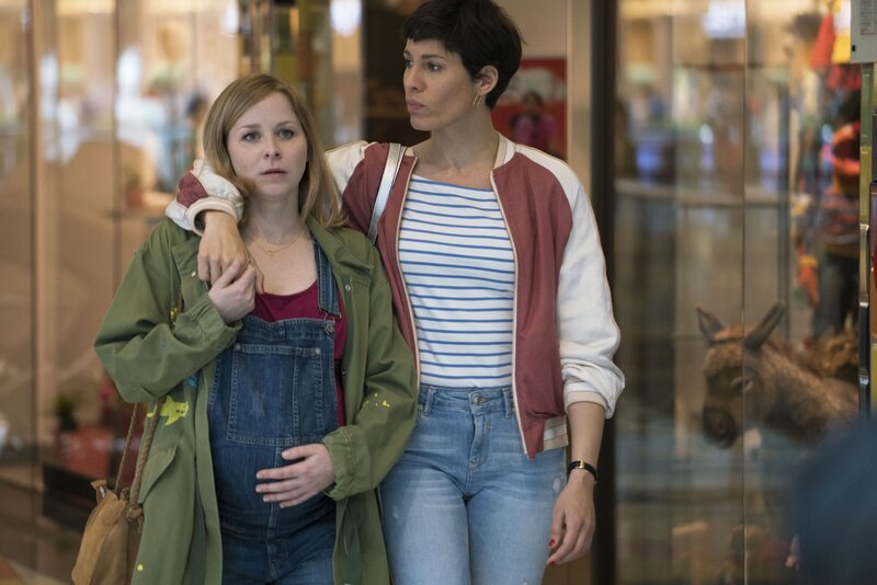 Als Charlottes (Jasmin Gerat, r.) Kollegin, Mitbewohnerin und wichtigster Mensch im Leben, Feli (Jasmin Schwiers, l.), schwanger wird, beschließt die Flugbegleiterin, ihr gesamtes Leben umzustellen, um dabei zu helfen, das Kind großzuziehen ...
