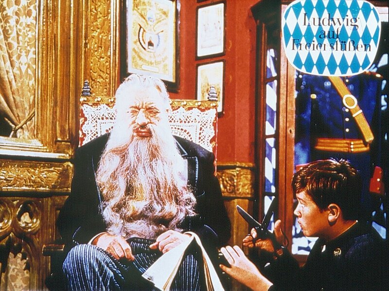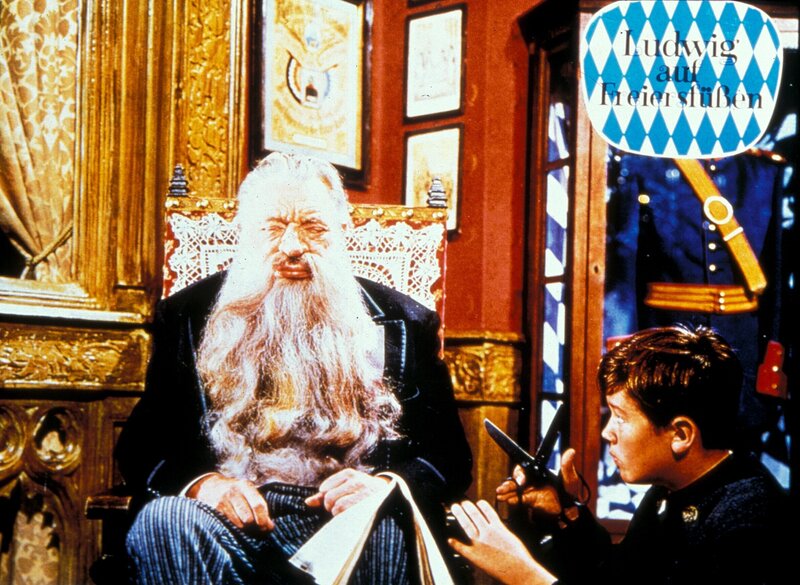 Gegen Ende seiner Schulzeit erinnert Ludwig (Hansi Kraus) sich früherer Streiche. Hauptmann Semmelmaier (Carl Wery) war mit seinem Latein als Erzieher am Ende, als Ludwig ihm den Rauschebart stutzte.Bild: © rbb/Degeto